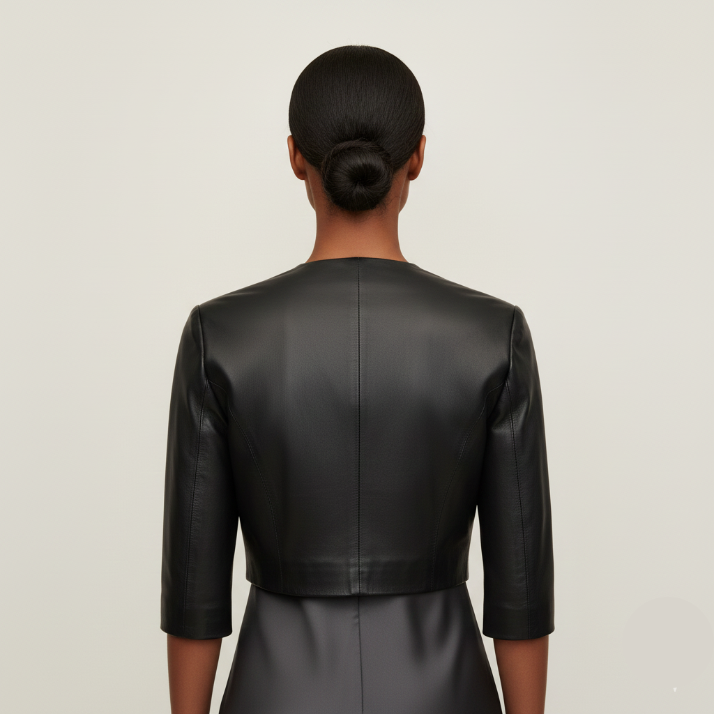 Invest in The Lumina—the ultimate black leather layering piece that blends the edgy appeal of leather with the polish of a classic bolero.