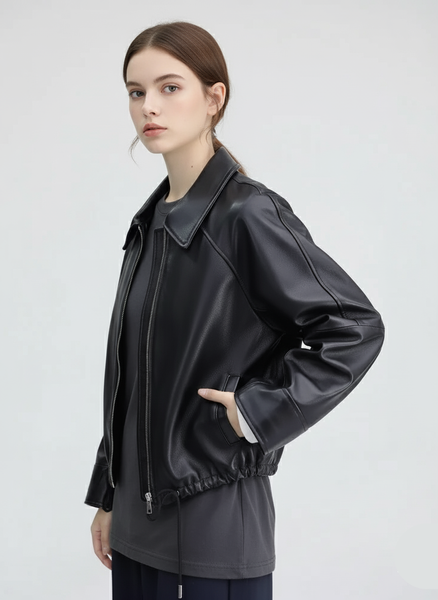 - Refined Style: Unlike traditional ribbed bombers, the sharp, fold-down collared design offers versatility, allowing this real leather collared bomber to transition seamlessly from casual to sophisticated settings.