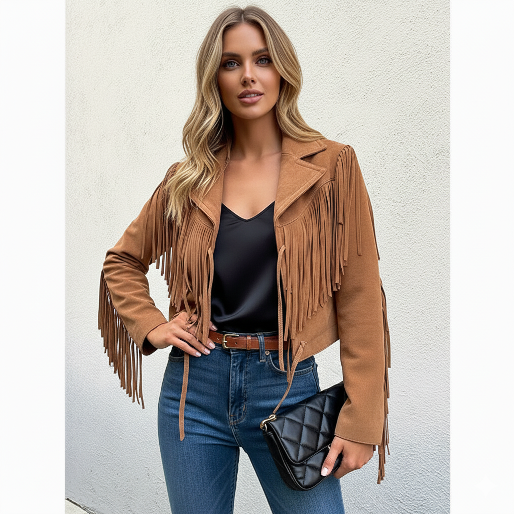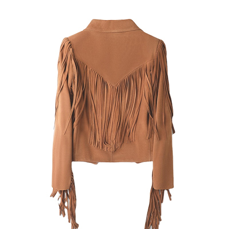 - Iconic Fringe Detailing: The generously long, cascading fringe across the chest, back, and sleeves embodies the classic cowboy jacket look, adding dynamic movement to every step you take.