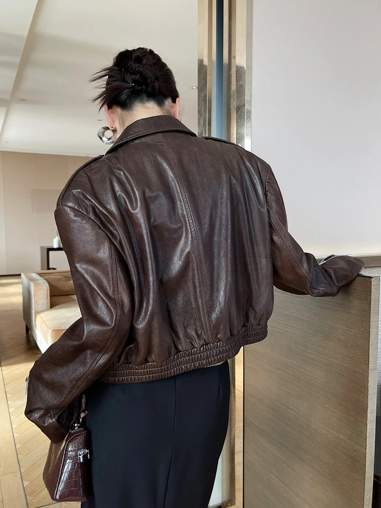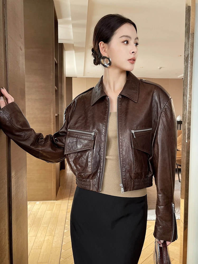 The Urban Luxe Pure Leather Cargo Jacket is crafted from 100% genuine leather, designed for women who want to embrace confidence, sophistication, and modern edge in every outfit. With its rich brown tone and sleek finish, this jacket is a timeless fashion piece that effortlessly blends luxury with everyday wear.